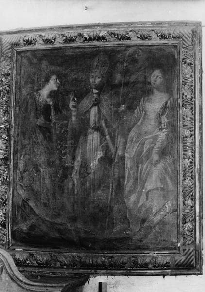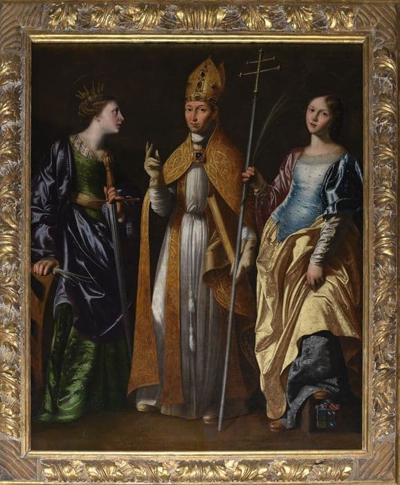 tableau : Evêque entre une sainte martyre et sainte Catherine d’Alexandrie