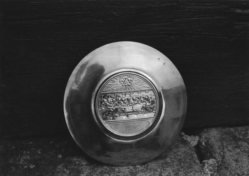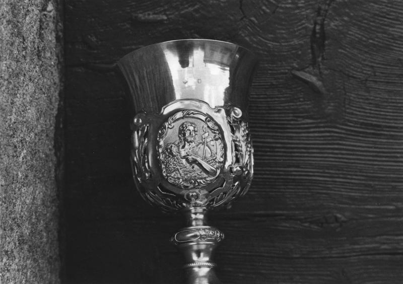 Coupe lisse dans sa partie supérieure. La partie inférieure et le pied sont ornés. La patène, ronde, a un rebord découpé.