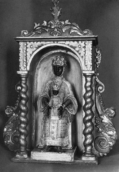 groupe sculpté : Vierge noire en majesté placée dans une niche sculptée