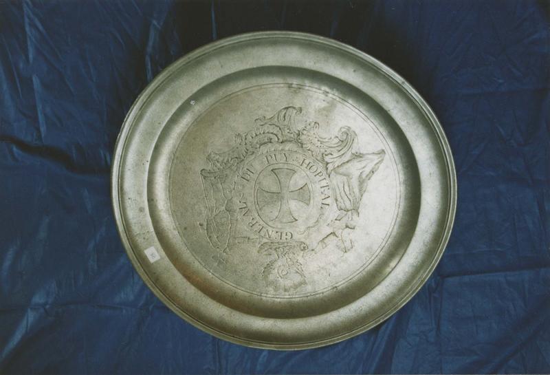 Le plat n°1 est décoré d'une croix hospitalière en son centre.