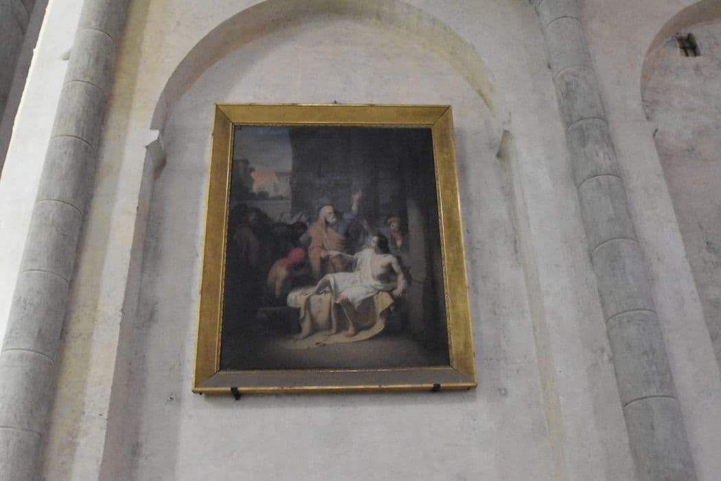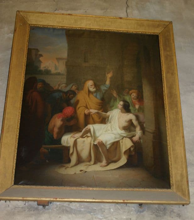 tableau et son cadre : saint Pierre guérissant un paralytique