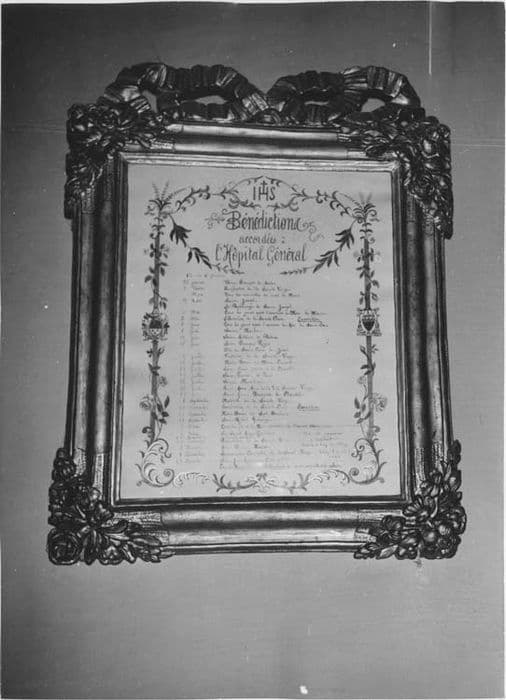 Cadre présentant la liste des bénédictions accordées à l'hôpital général.