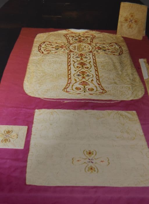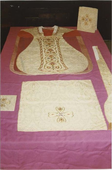 ornement liturgique catholique ; chasuble ; étole de clerc ; bourse de corporal ; manipule ; pale