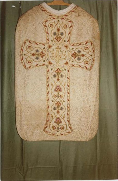chasuble, étole, manipule, bourse de corporal et pale (ornement blanc)