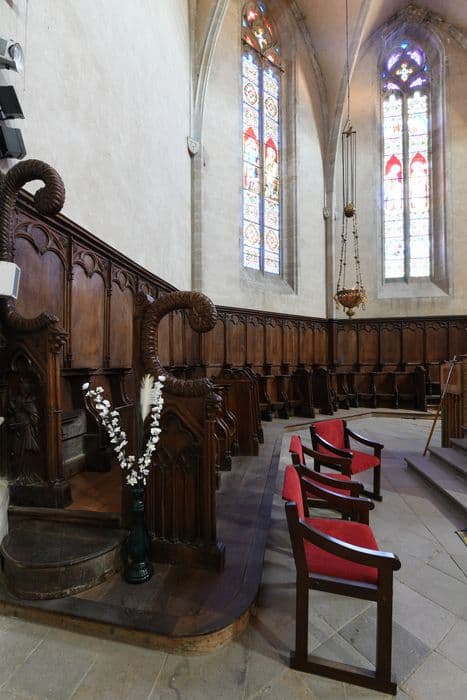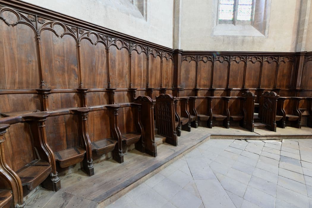 Stalles en bois de chêne (partie ancienne) et bois de noyer (parties 19e siècle).
