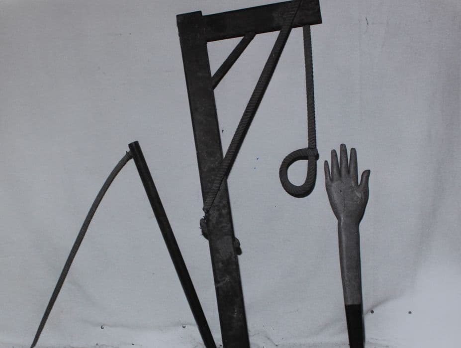 trois instruments de la Passion : La Potence, le Fouet et la Main