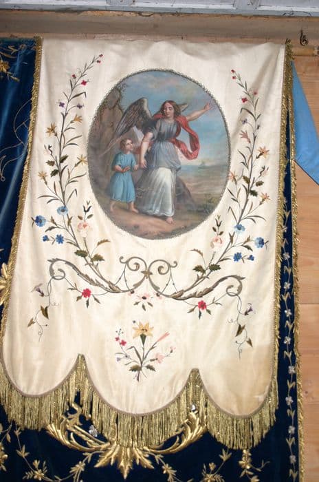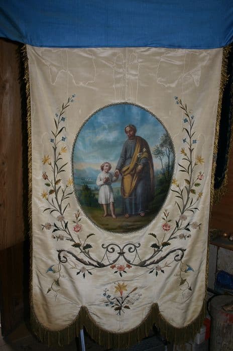 POP | Plateforme ouverte du patrimoinebannière de procession : Ange gardien et Saint Joseph et l'Enfant Jésus