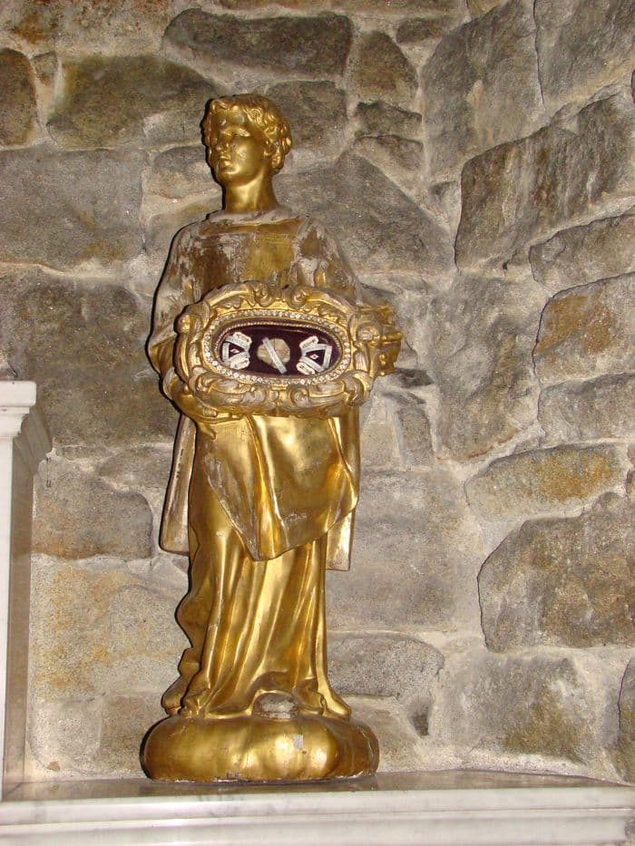 Chaque reliquaire est porté par une statue représentant un diacre et un soldat romain.