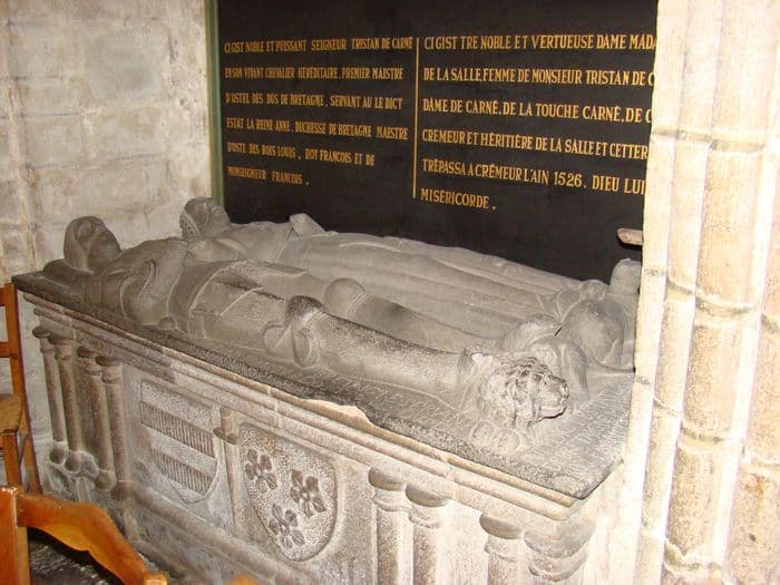 A effigies en relief et à inscription de Tristan de Carné, maître d'hôtel des ducs de Bretagne et de Jeanne de La Salles sa femme morte en 1526.