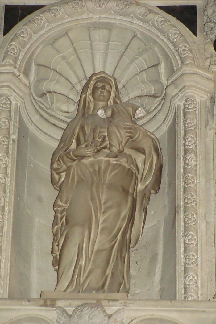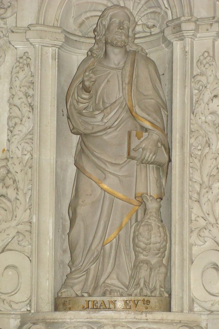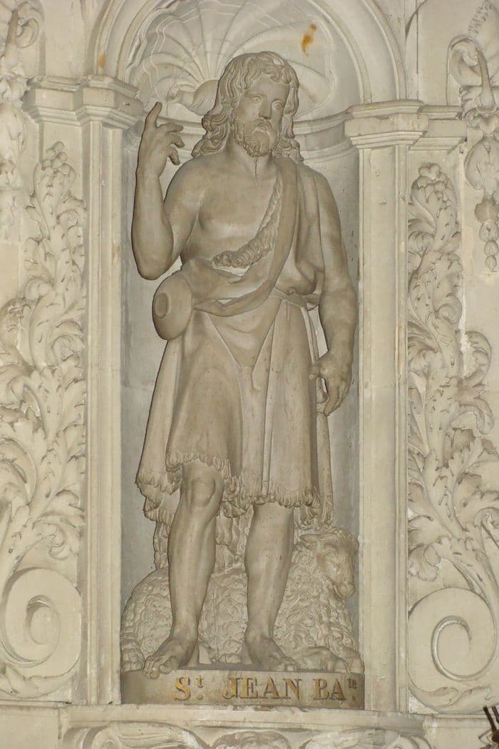 5 statues : saint Jean-Baptiste, saint Jean l'Evangéliste, saint Paul, Vierge à l'Enfant (la), saint (?)
