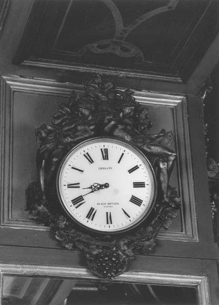 acajou ; verre ; marbre ; bronze ; toile (support) : peinture à l'huile