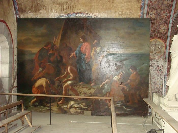 Huile sur toile représentant la pêche miraculeuse.