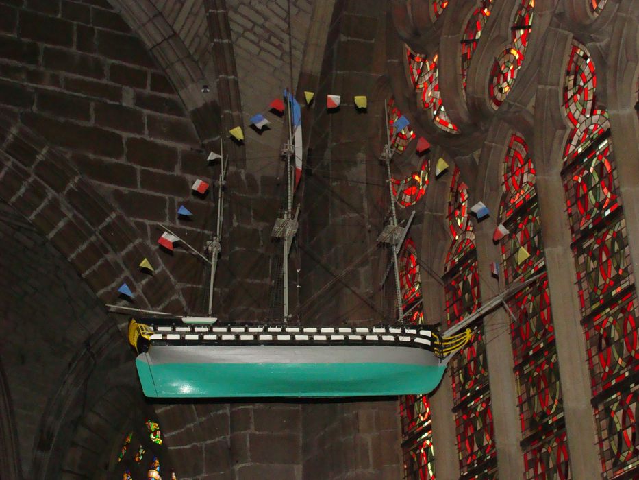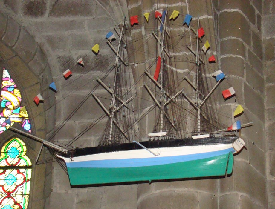 deux ex-voto (maquettes de bateau) : vaisseau de guerre trois-mâts dit Le Saint Pierre et navire de commerce trois-mâts carré dit L'Assomption