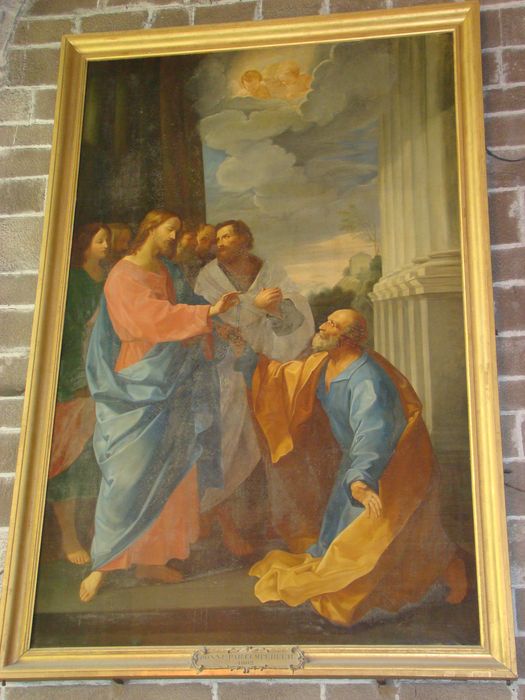 Tableau réalisé par Madame Th. L. Mougey, d'après une toile de Guido Reni. Cette copie de la Remise des clefs à saint Pierre est une commande de la Direction des Beaux-Arts en 1860, attribuée à l'église du Croisic.