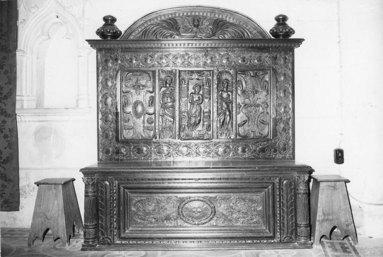 Panneaux encastrés dans le dosseret du banc d'oeuvre.