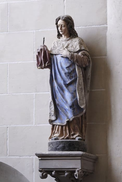 POP | Plateforme ouverte du patrimoinestatue : personnage vêtu d'un manteau d'Hermine tenant un clou de la passion