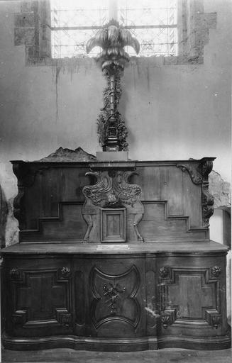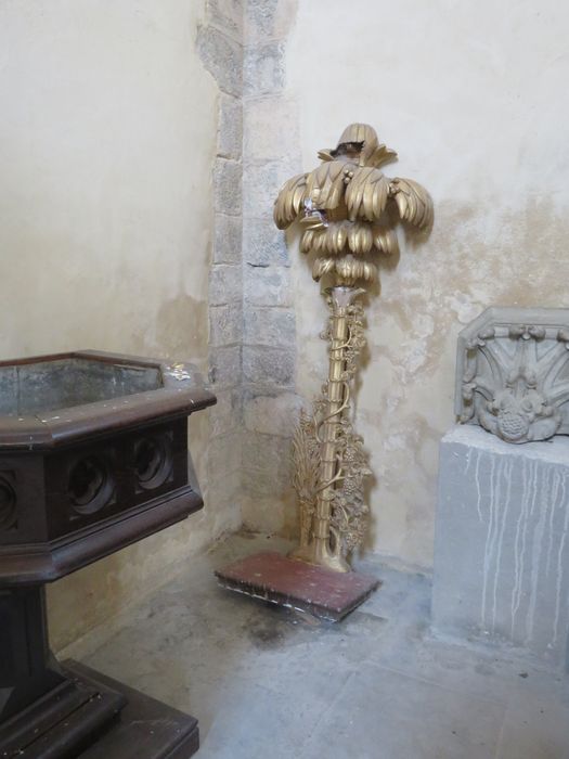 En forme de palmier dont le tronc et la base sont entrelacés de vigne et de blé.
