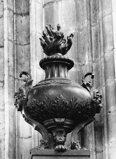 Libellé de l'arrêté de classement : quatre pots à feu (provenant du jubé), bronze et marbre de Campan, XVIIe s. (Trésor).