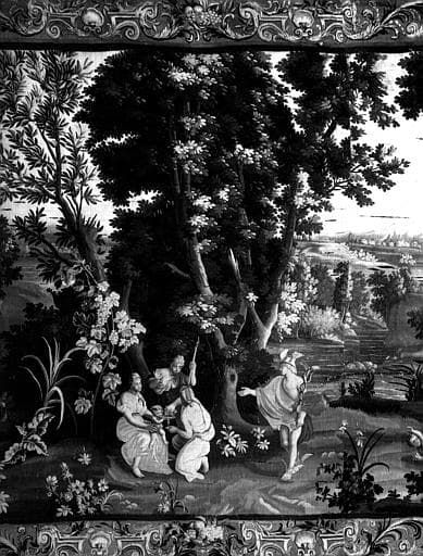 h = 309 ; la = 405 ; Dimensions de la 1ère tapisserie ; 2e tapisserie : h = 309, la = 405 ; 3e tapisserie : h = 405, la = 331