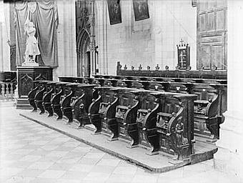 43 stalles, un groupe de 7 dans le choeur, un de 5 et un de 4 dans le transept nord, un groupe de 4, un de 5 et deux de 9 dans le transept sud.