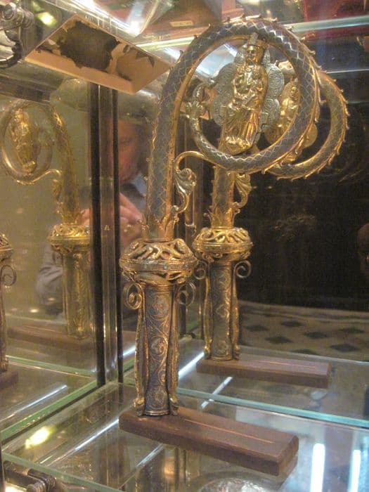 crosse pastorale ; calice ; patène ; anneau pastoral ; objet non identifié ; bâton pastoral ; boucle de ceinture