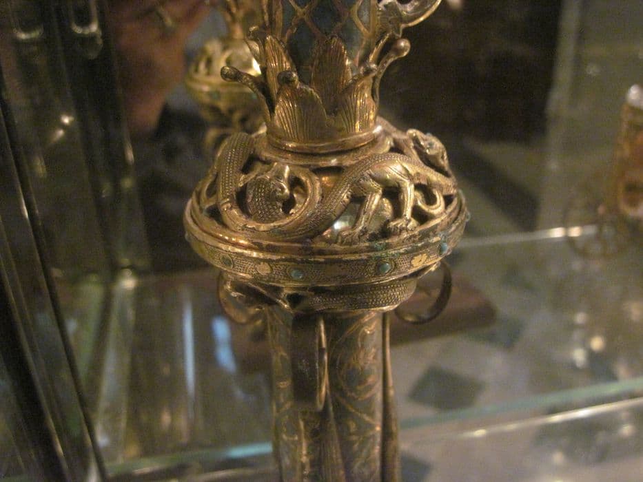 oeuvres provenant de la sépulture de Guillaume de Boësses : crosse pastorale, calice, patène, anneau pastoral, oeuvres de fonction non identifiée, bâton pastoral, boucle de ceinture