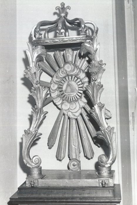 Arrêté : Dais pour exposition du St-Sacrement. Début XIXe siècle. Très endommagé. C. 60 cm.