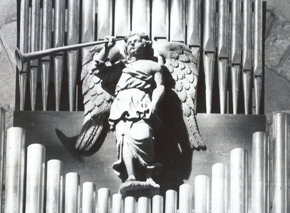 sculpture (fragment du buffet d'orgue) : Ange à la trompette
