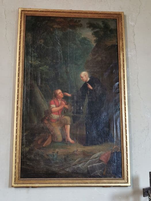 tableau : Saint Abbé (saint Avit ?) guérissant un enfant muet (ou un pélerin ?)