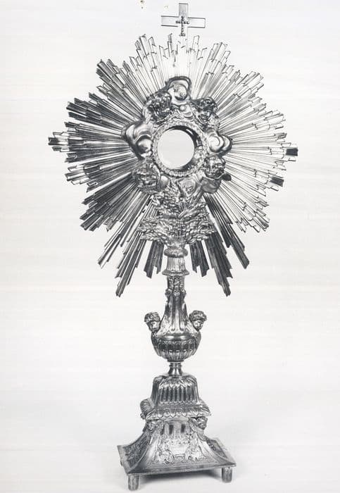 Les brillants (pendants d'oreilles et une bague) fixés sur l'ostensoir ont été dérobés entre 1994 et 2008.