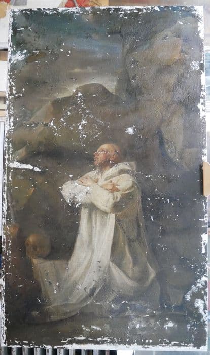 tableau : Saint Bruno en oraison devant une grotte