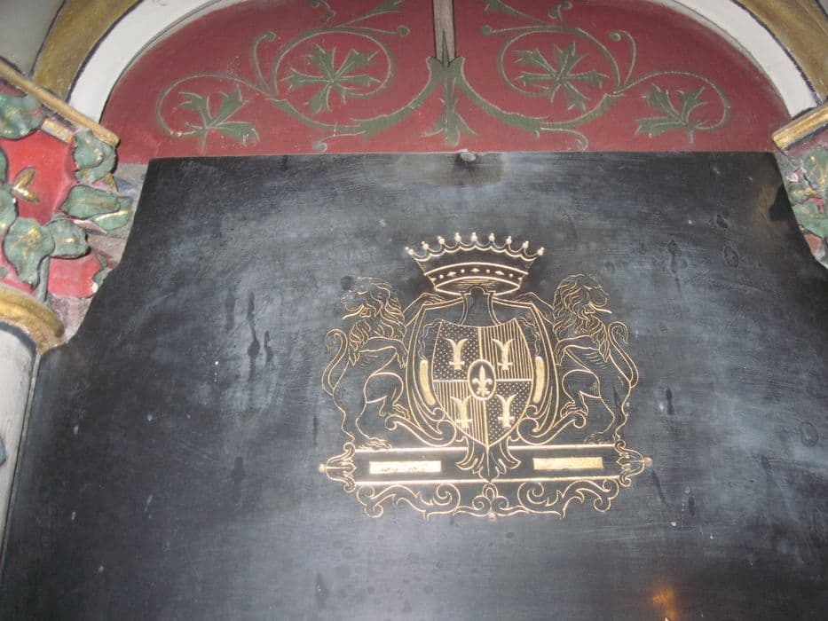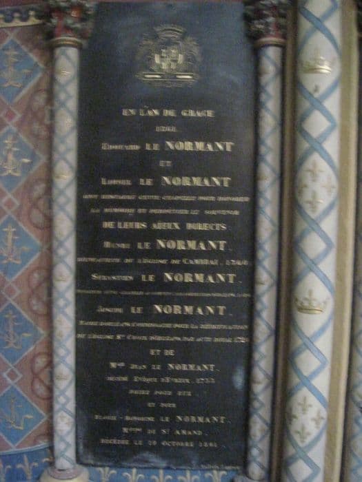 inscription commémorant la restauration de la chapelle de la famille le Normant
