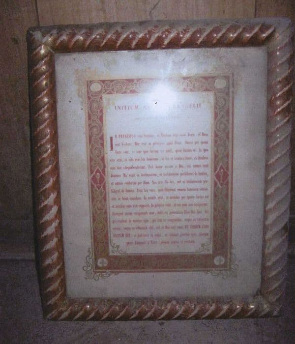 papier (support) : imprimé, encre (rouge, or) ; bois : taillé, mouluré, doré ; verre