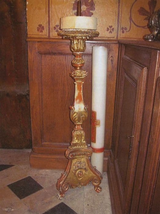 Dans la sacristie de la cathédrale, rez-de-chaussée, 1ère salle, posé au sol de l'entrée.