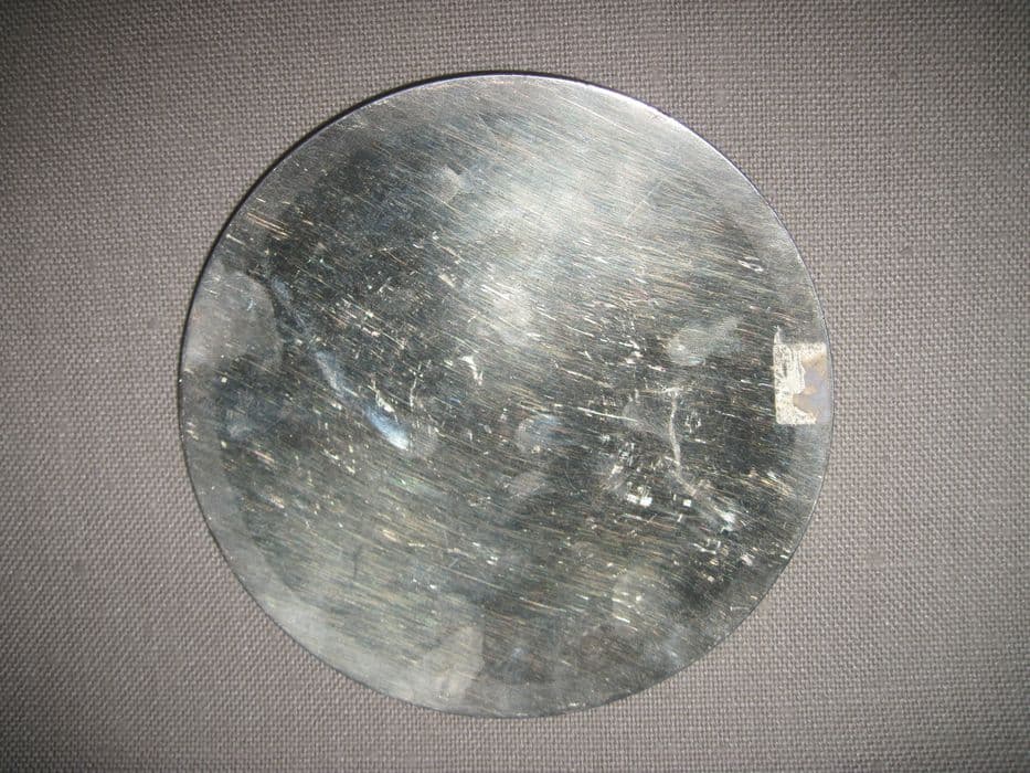 Patène ornée des lettres I.H.S. surmontées d'une croix feuillagée rayonnante ; au-dessous, un coeur surmonté de trois flammes ; sur le pourtour de la cuvette, la couronne d'épines stylisée.