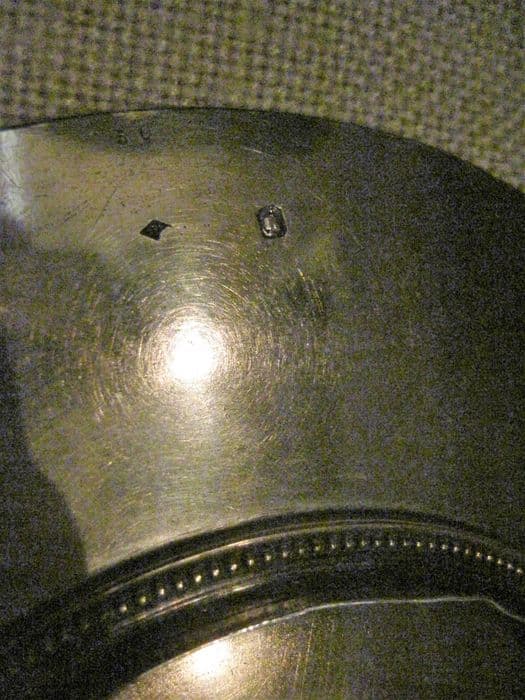 Patène avec un simple décor de rang de perles sur le pourtour de la cuvette au revers.