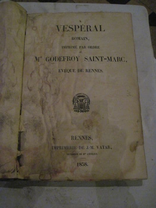 livre liturgique : Vespéral romain imprimé par ordre de Mgr Godefroy Saint-Marc, évêque de Rennes