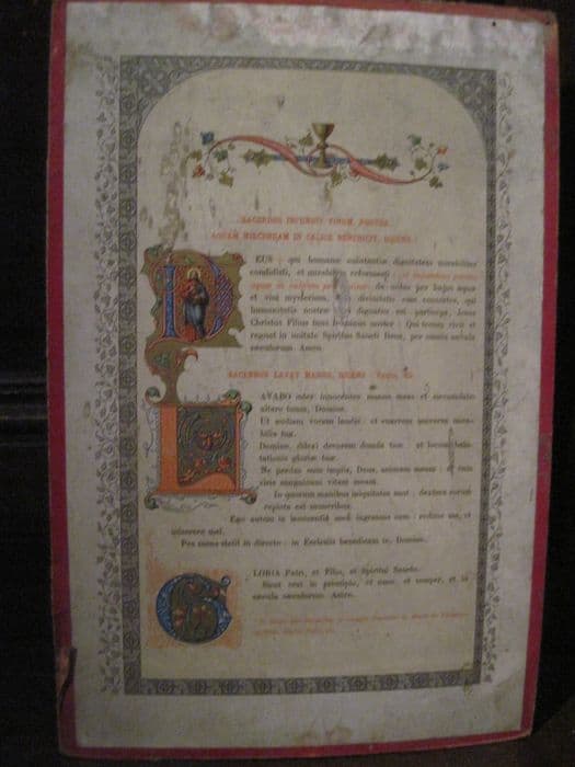Feuillet imprimé contrecollé sur carton. Lettrines D, L, G traitées en manière d'enluminures.