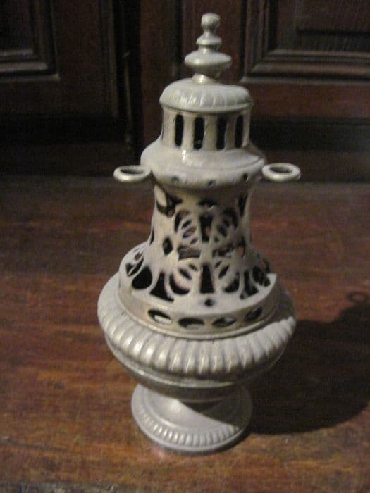 Encensoir à base godronnée et partie supérieure repercée, chaîne.