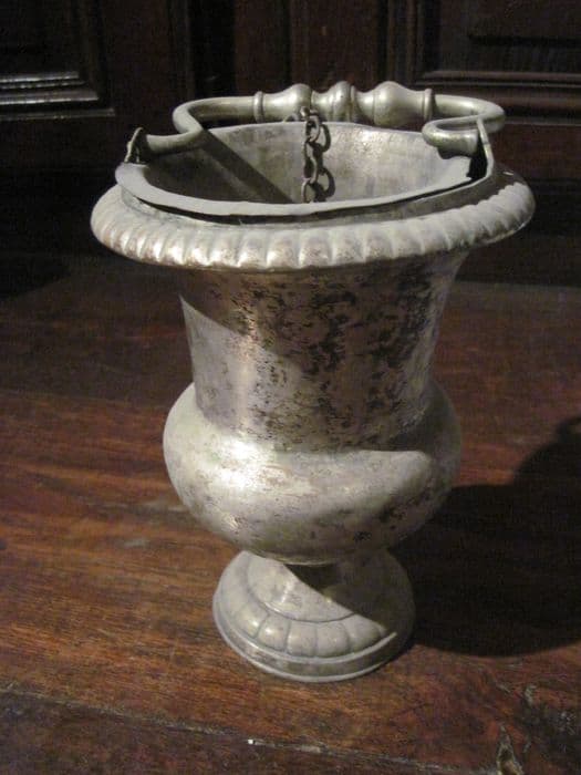 Bénitier en forme de vase Médicis godronné, chaîne.