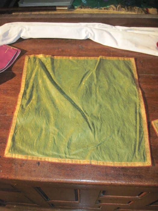 Tissu synthétique. Voile de calice fond damassé vert