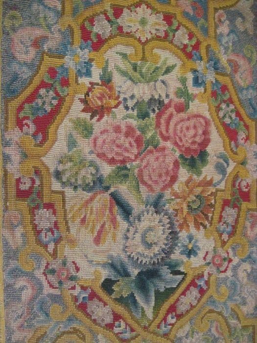 Voile huméral broderie au petit point à motifs de bouquets de fleurs et de feuillages dans des cartouches
