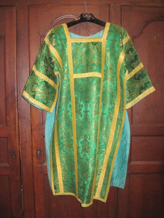 2 dalmatiques fond damas vert.