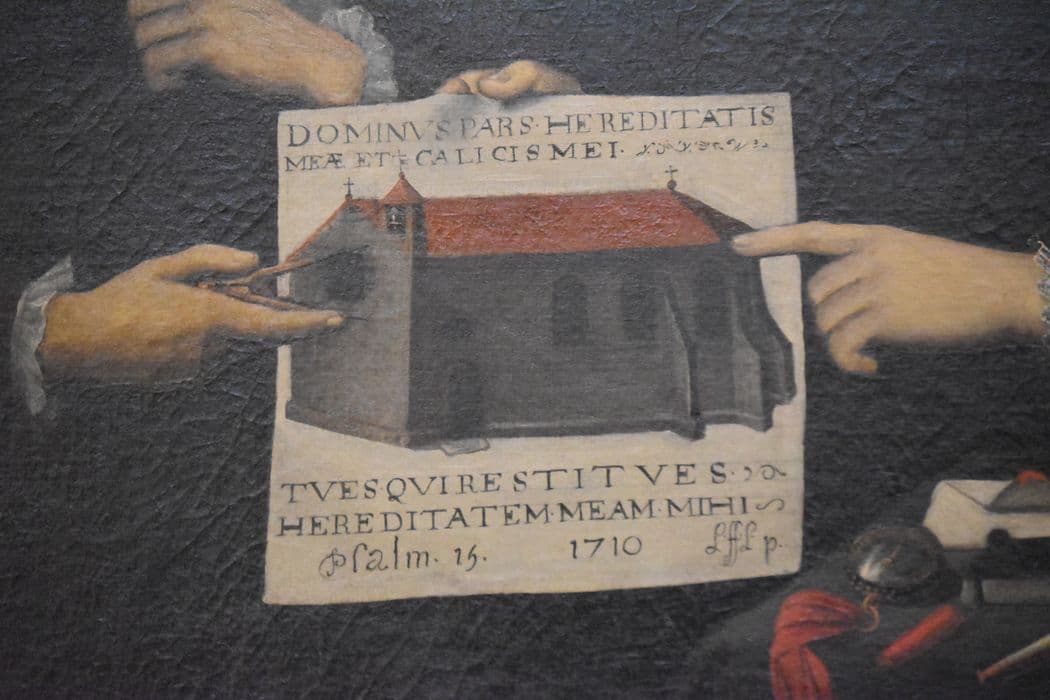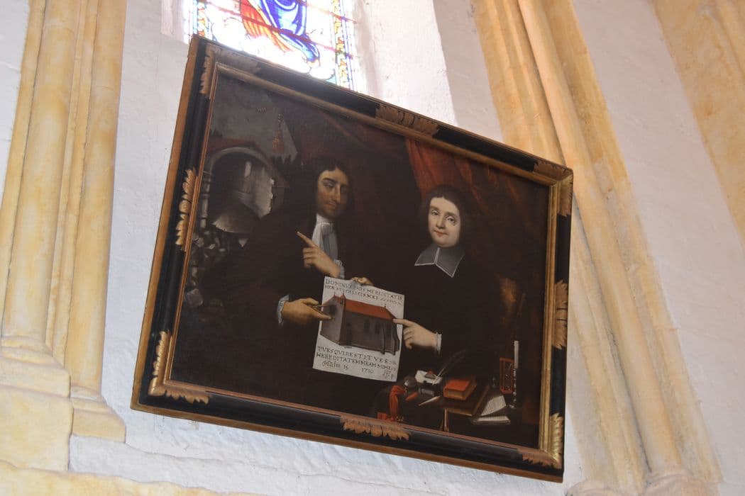 tableau : Architecte et le donateur présentant une chapelle qu'ils viennent de faire rebâtir (l')
