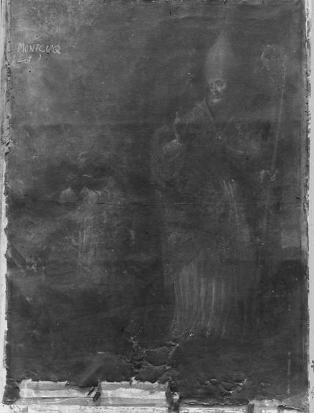 tableau : Saint évêque et un religieux en prières (un)