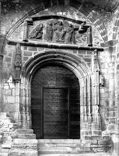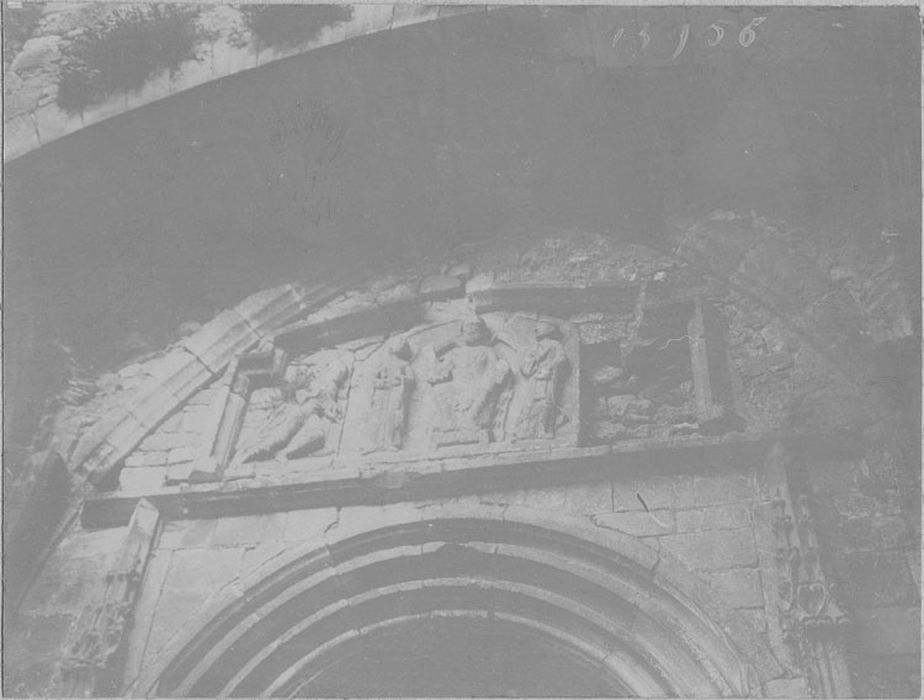 Ancien tympan rapporté dans le portail de l'ancienne église qui sert de mairie. Il est incomplet : il manque l'ange symétrique de celui qui subsiste à gauche.