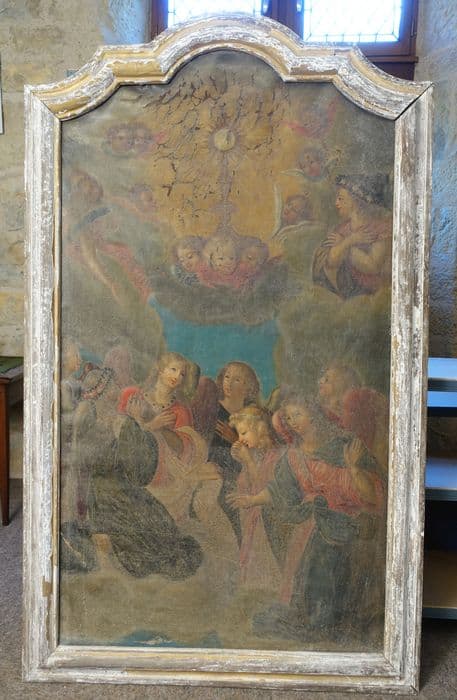 tableau et son cadre : Adoration du Saint-Sacrement par les Anges
