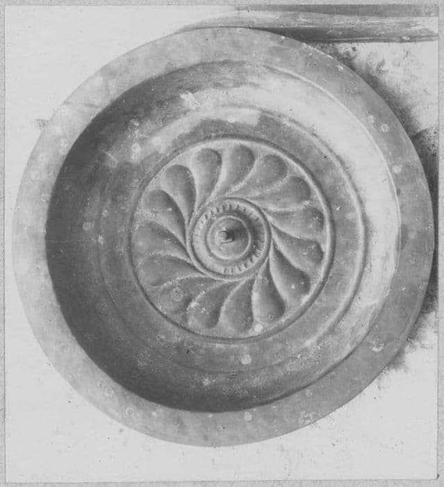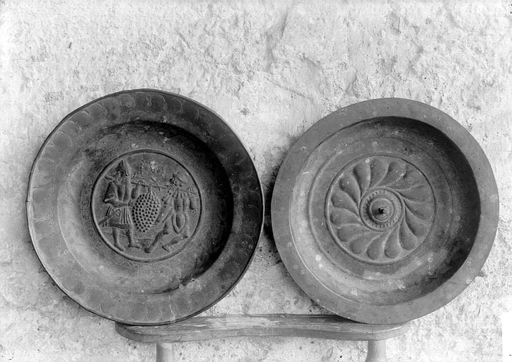 Le plat de quête avec grappe de raisin au centre a été volé (date non précisée) ; vol signalé en 1973.