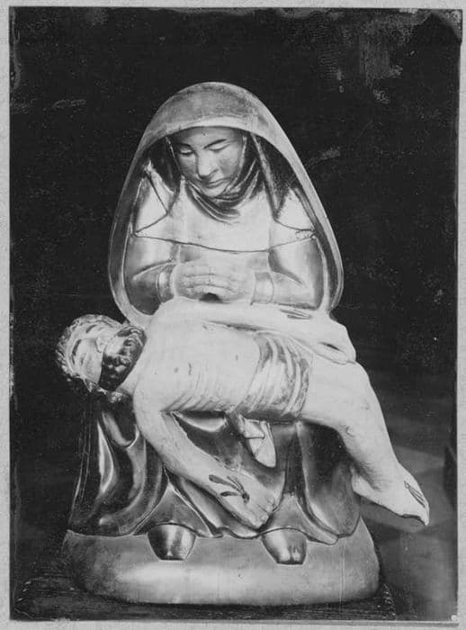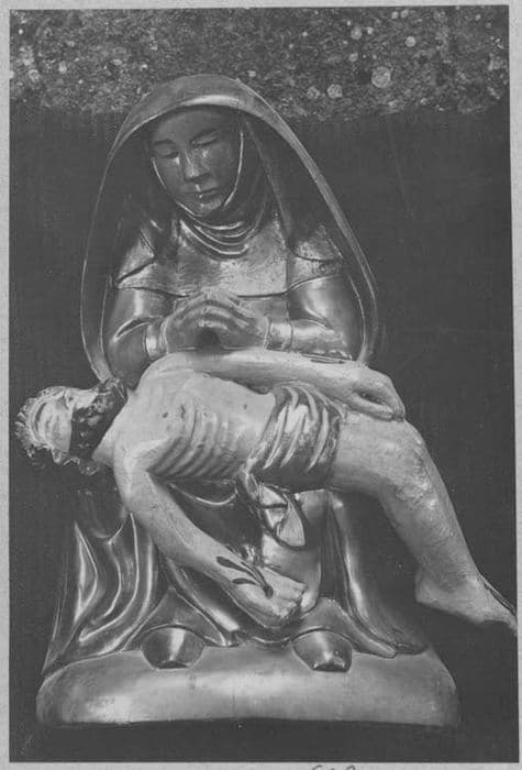 Autel de forme rectangulaire avec un parement moderne encadré d'une bordure ancienne de fleurs sculptées. tabernacle avec trois scènes en bas relief : saint Paul, sur la porte, l'Assomption, à droite et la Présentation à gauche. Le retable est formé d'un ordre de quatre colonnes torses enguirlandées, deux à droite et deux à gauche. Piéta en bois sculpté du 16e siècle dans la niche. statues de saints entre les colonnes.