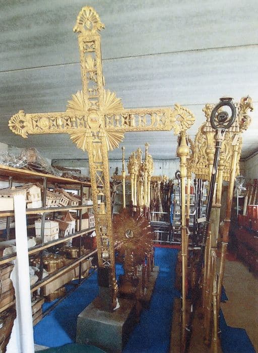 Croix de la confrérie des Pénitents Blancs, ornée des Instruments de la Passion.